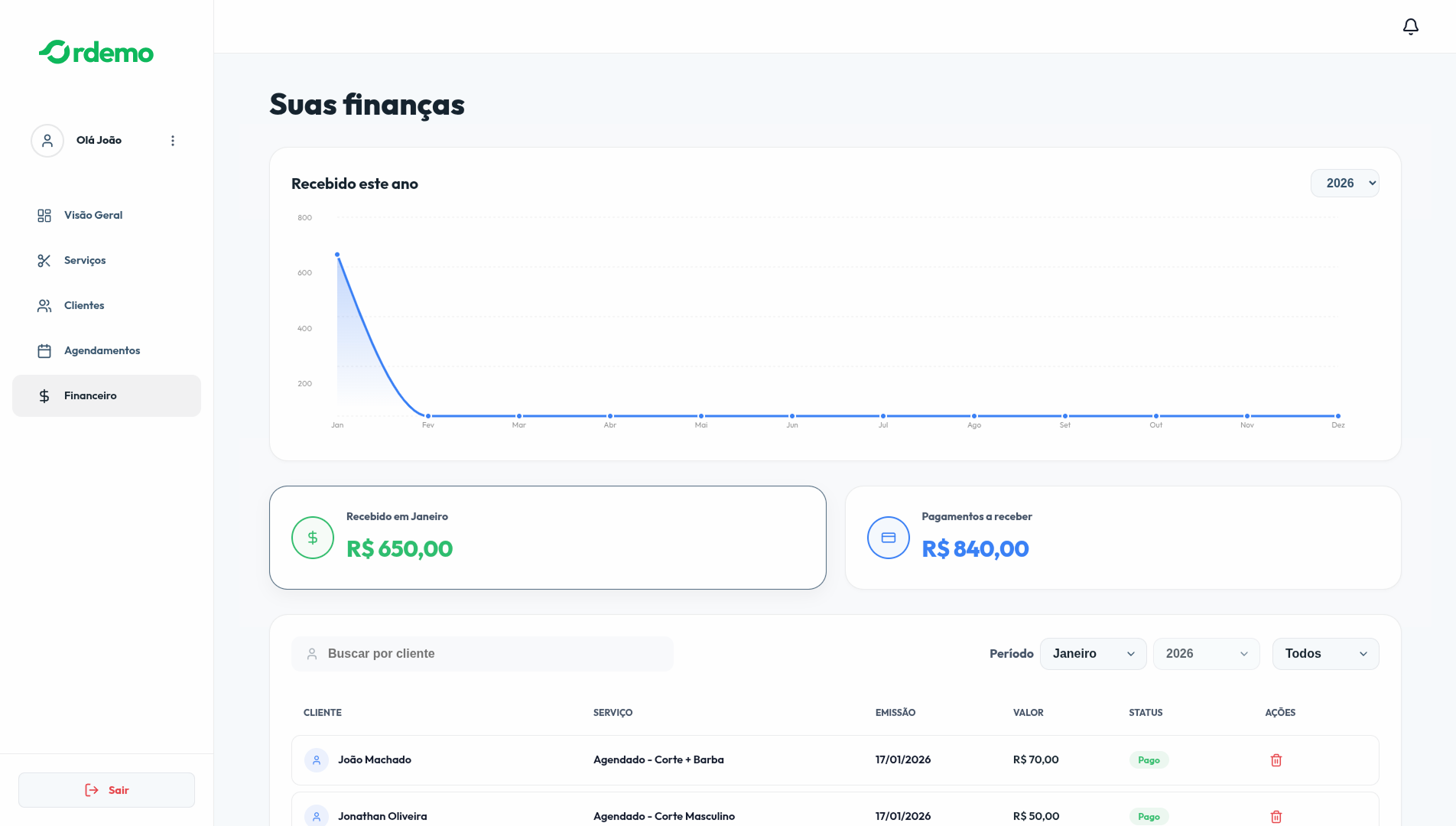 Acompanhe seu faturamento e gerencie seus clientes com total clareza e controle.